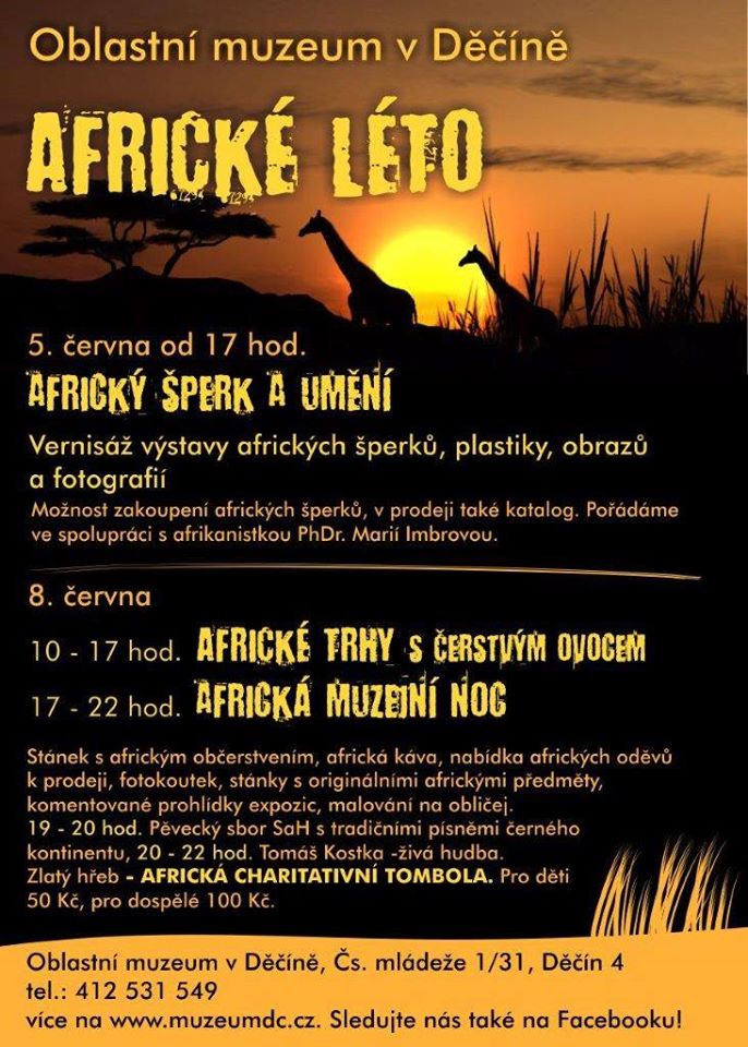 Pro děti je připraven fotokoutek Masajů s tradičními kmenovými doplňky či malování afrických zvířátek na obličej. Celý den na Vás čeká také bohatá AFRICKÁ CHARITATIVNÍ TOMBOLA! Výtěžek z tomboly poputuje na pomoc jedněm z nejchudších obyvatel planety v Zimbabwe, peníze jsou určeny na jídlo, školní docházku, lékařskou pomoc či podporu největší sochařské školy na světě Tengenenge.